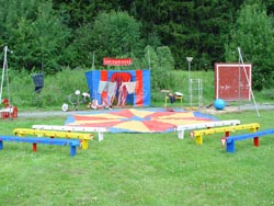 Lapsille opetetaan uskomattomia temppuja, jotka he saavat esittää: kokeillaan yksipyöräisiä sirkuspyöriä, tasapainotemppuja jne.